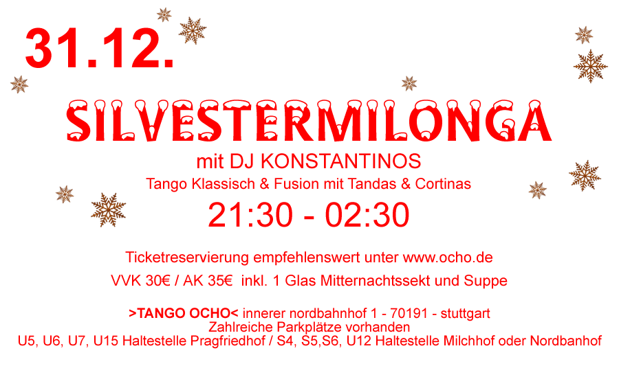 TANGO OCHO SILVESTER-MILONGA mit DJ KONSTANTINOS (Ulm)